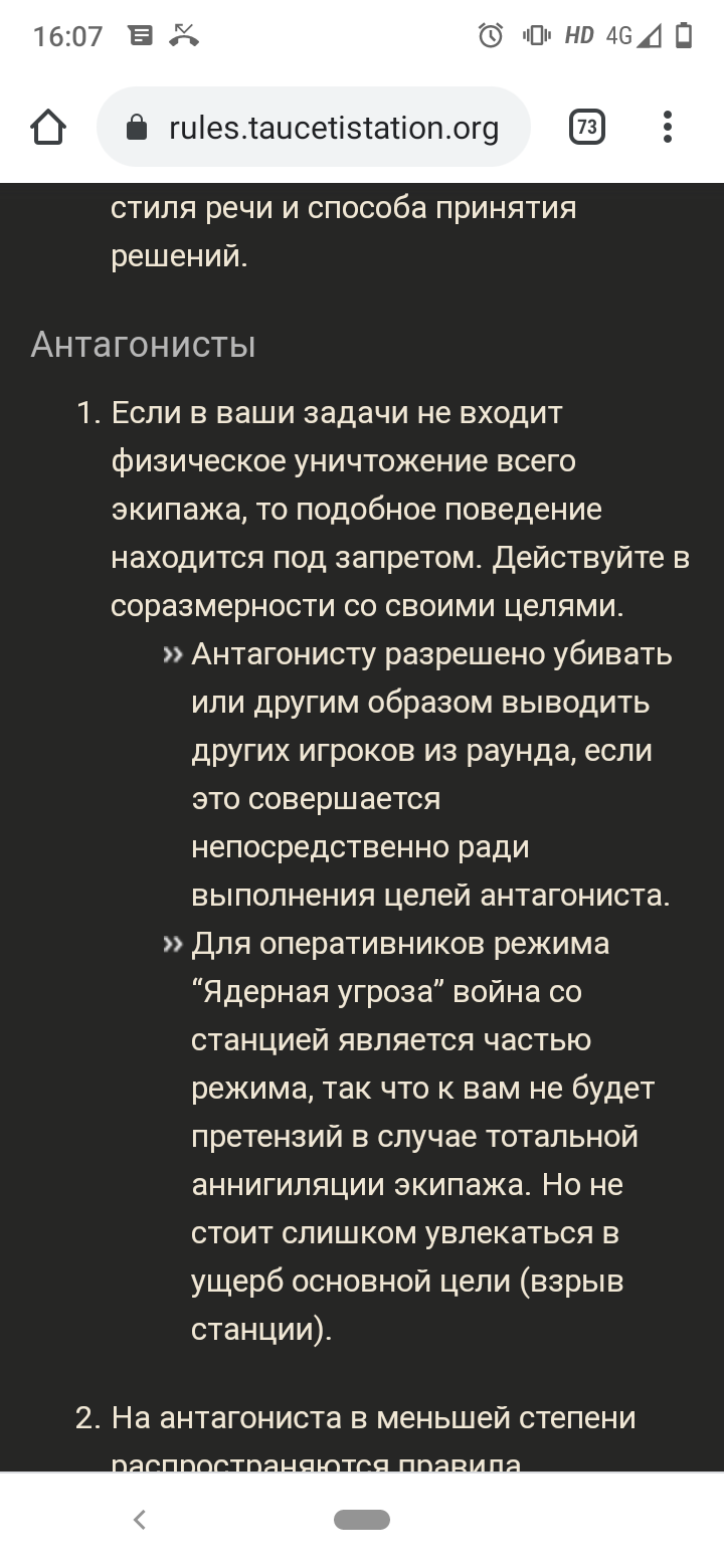 Антагонисту разрешено убивать или другим образом выводить других игроков из раунда, если это совершается непосредственно ради выполнения целей антагониста.