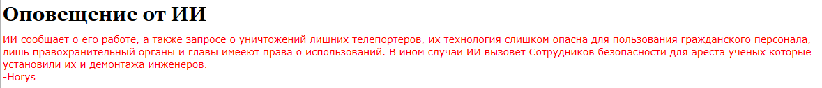 Далее ИИ приказывает мне(боргу без ИИ) готовиться к разбору телепортов