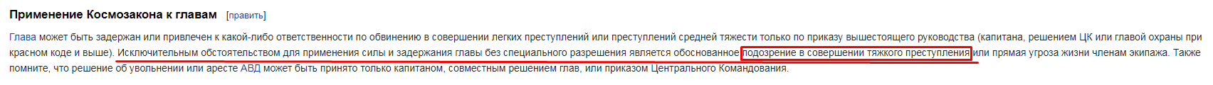 Чел где я говорю что спутник и ядро одно и тоже, я говорю что подозрения по статье 308, со стороны офицера вполне обоснованны. Так как у РД нету свободного доступа на спутник, так что подозрения в красной статье позволяют задержать РД без приказа начальства.