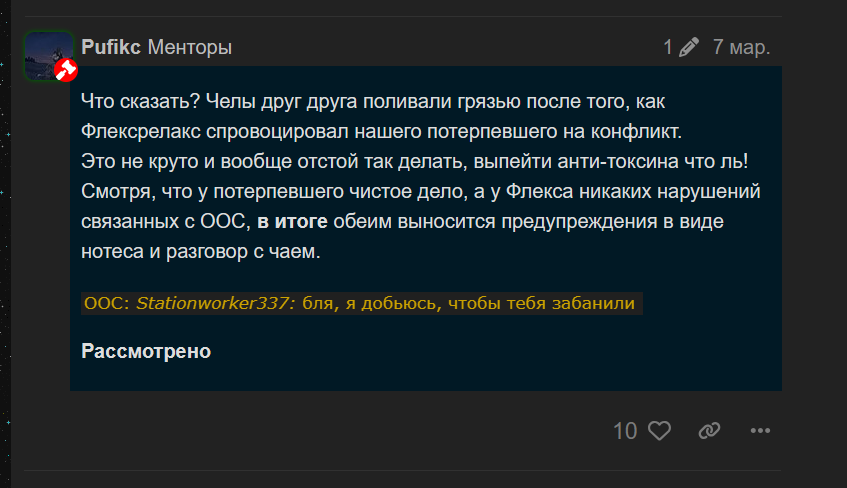 вальтер до этого токсинил в оос как шизанутый и на него не обращали внимания админы, которые были в раунде. Так что предъява феймоса всё ещё релевантна