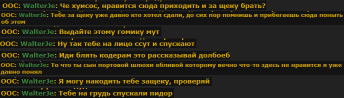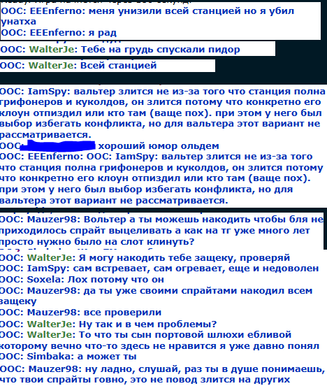 Очень удобная позиция байтить на конфликт ничем не рискуя. Мейби для вас это не оскорбления, но для человека, потратившего кучу времени и сил на что-то, принижение изменений даже более оскорбительно. Не собираюсь оправдывать вальтера, по скринам кукурузы он ещё с ситуации в раунде сгорел, но дальнейший прогрев по спрайтам просто омерзителен.
