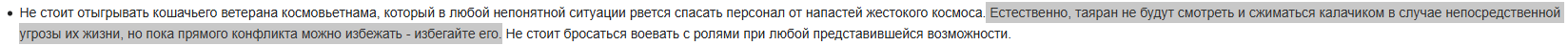 Хз, если у тебя какая-то претензия напиши бх, мол, “неролеплейно отыграл встречу с немыми космическими русскими, которые бьются лбами в стены посреди технических тоннелей”. Я, как аргумент, скажу, что ситуация настолько бредовая, что адекватного отыгрыша здесь в принципе не может быть, и пусть педали решают. Не выкупаю в чем суть дискуссии.