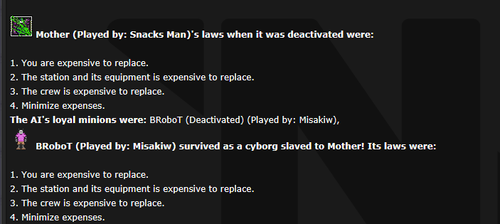 Ну я типо по РП пытаюсь доказать что ИИ не может сбоить, а мне уже и бармен и тестовик в один голос говорят что каждую смену у них борги сбойные и ИИ взломанные. Я тогда конечно посмеялся, но и приобрёл опыт - сбойный ИИ уже настолько обыденная фраза, что реагировать на неё “как надо” уже кринж.