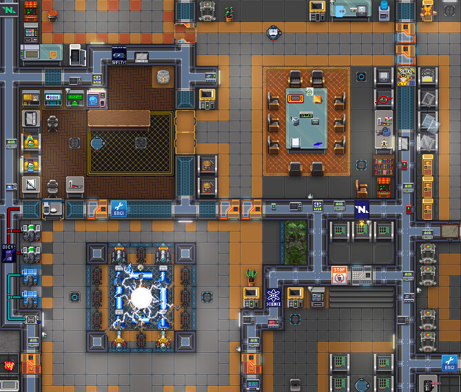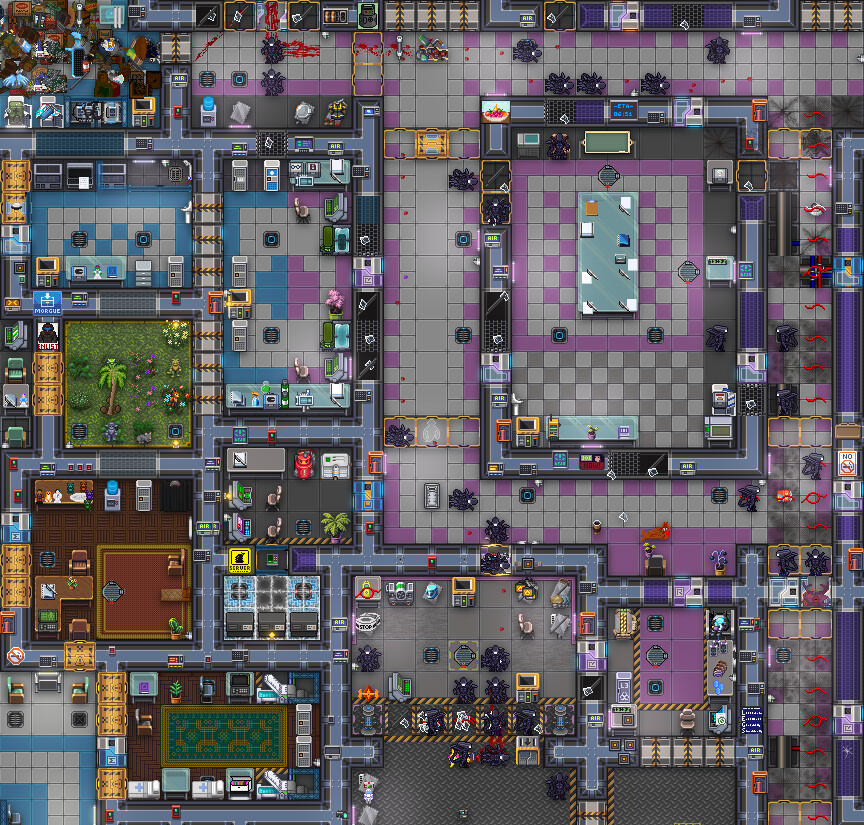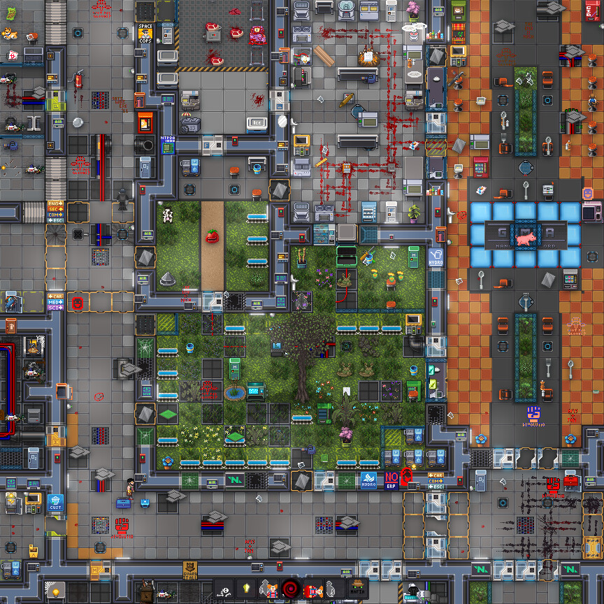 Нюка подходит к мостику, блокирую оставшиеся двери болтами и отстреливаюсь с мостика. Отчет на ЦК уже отправлен, просто тянем время. Они ломают первую дверь на мостик и я роняю бронестворки. После чего мы со смо отступает в комнату ИИ. Я тогда уже получил где-то ранение. В комнате ИИ мы прячемся в ящик и ждем пока нюка сломает турели, а потом почти в упор хуярим ее из лазеров. Пока они офигевают от такого подарка, я открываю портал на сателит и мы туда со смо сваливаем. Нюка по каким-то причинам за нами не прыгает (возможно были еще живы турели и я просто попросил их вырубить ии)