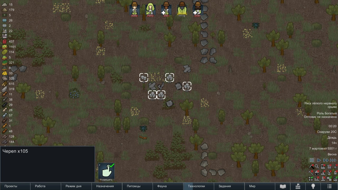 Я играл на аварийной посадке, и с тремя колонистами была собака. Все было нормально, до тех пор пока я не активировал монолит. Поймав взглядокрада, я иследовал возвание к пустоте, и с помощью ритуала вызвал пелену смерти. Я тут же начал строить клетки и ловить шамблеров. Ни одного я так и не поймал, все подыхали. В процессе, милишник был ранен и дальше охотились с собакой. Одна поскуда оторвала бедолаге лапу вместе с глазом и положила одну пешку. Все таки убив ее, оставшиеся на горбу потащили двоих домой, чтобы вылечить. Собаку спасли, лежала дома с милишником, а вот раненую не донесла другая пешка, прямо у дома сошла с ума и набросилась на гигантского ленивца, который пошел драться с шамблерами. Она к сожалению умерла, но к ней на замену прибыл незнакомец в черном, с почти такими же статами. Казалось бы все стало спокойно, но нет. Ленивец помер от кровотечения, и вместо с той истеричкой и шамблерами, с которыми он дрался, начали ломиться к нам в дом. Дверь не выдержала, и зомби положили милишника. Благо был незнакомец, который, обводя всех вокруг дома, успел взять его. Это была четная попытка, ведь он был медленнее чем орда шамблеров, однако его спасла еле живая собака-инвалид, которая всех на себя отвлекла, пожертвовав своей жизнью. Тем временем, ушла из жизни другая пешка от заражения и милишник, которого не успели спасти, остался лишь незнакомец, который сбежал прочь, бросив все. Теперь он оказался один, без ничего.