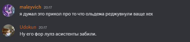 Удокун ещё и лицемер походу, на форуме пишет одно, в дискорде пишет другое.