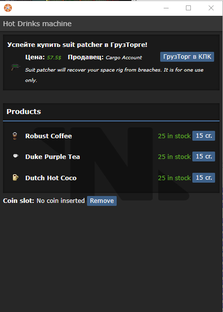 Реклама в вендинговых аппаратах, принадлежащих карго.