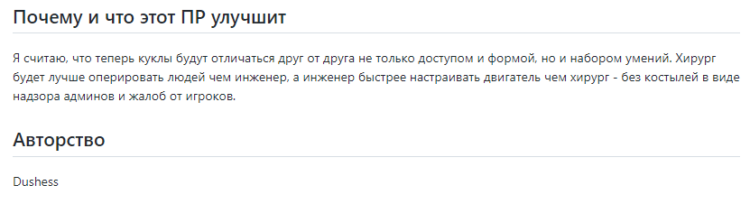 По сути, если убрать дебафы то идея не потеряется. Куклы станут… особенными? Душесс писал на гите, что это вносит дайверсити для кукол.