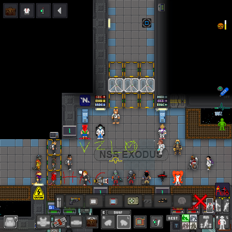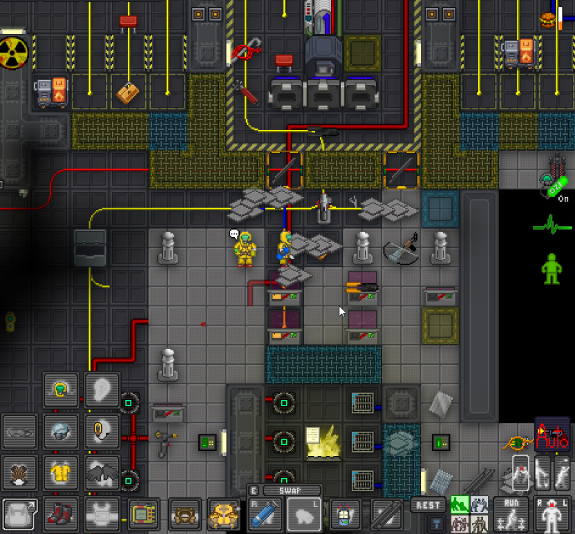 Вокруг мусор. В помещении декомпрессия, оба уже облучились до надевания костюмов. Поглотители радиации вообще не подключены к сети. Эммитер с третьей попытка заработал. А выход энергии отсутствует. Еще и самодельный арбалет валяется сбоку.