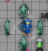 Под стол. Но какой смысл? У щитсеков есть худ, который идет поверх других объектов на карте. Поэтому если кто-то полностью спрятался под чем-то, то можно смело жать граб по худу челика и вытаскивать его.