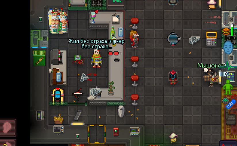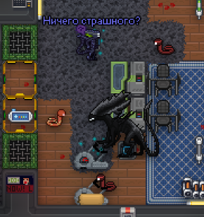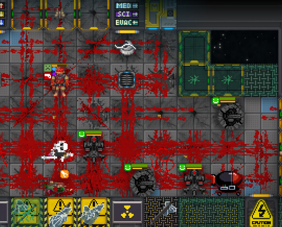 Можно заметить, что абсолютно весь пол покрашен. Абсолютно весь шаттл отбытия покрашен. И можно заметить, что медбей - самый смертоносный отдел. Самые опасные места станции: криоподы медиков, столы хирурга, алтарь и крематорий священника, а так же шкафчики в дормах и холодильник повара.