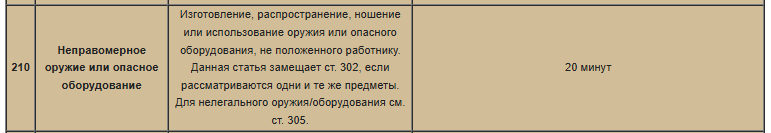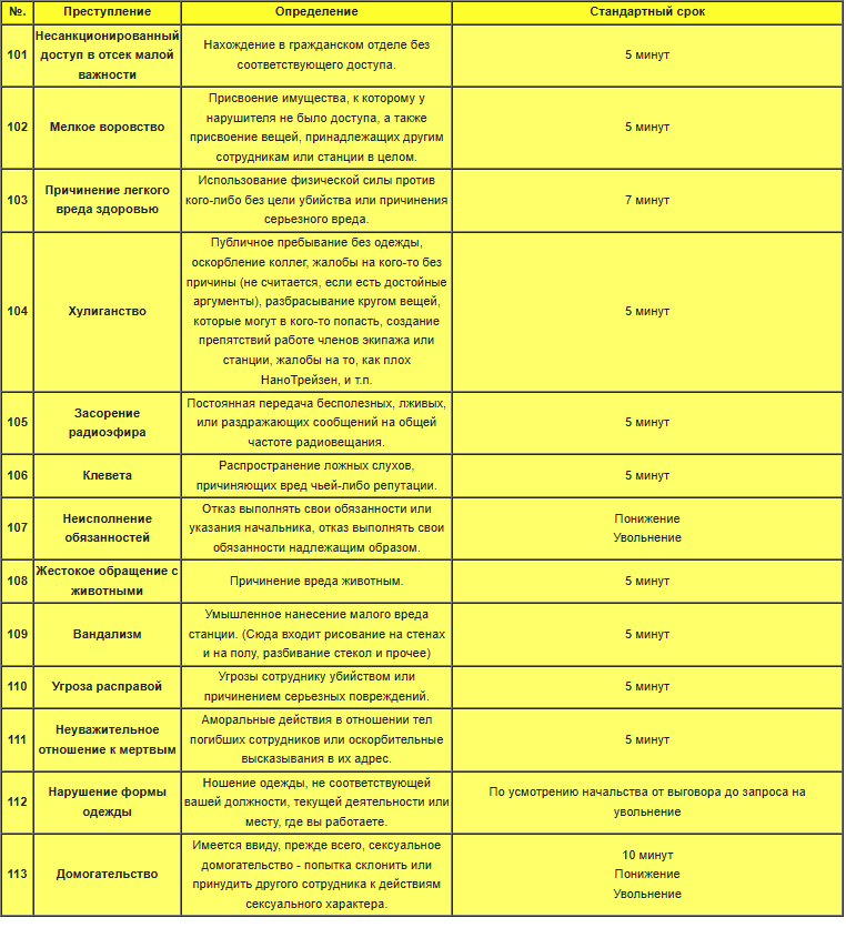 Итого, у условного татара было бы… Взлом кепской, кража карты, условно, один раз отпил ногу парамедику (целька на увечья), нелегальное оружие, потом пол смены дрочил СБ. Итого… Взлом отсека повышенной важности, крупная кража, контрабанда, причинение тяжкого вреда здоровью, нападение на офицеров (многократно)… Казалось бы перма? Но нет, мы садим на 30 минут, пушто это наивысшая статья - у контрабанды срок 30 минут, а все остальное лишь по 20!… А если еще ситуация, вот его воткнули в общак, он через 5 минут сбежал. А поскольку пермы не было, мы садили по наивысшей статье за контрабанду - 30 мин, у нас побег не с пожизненного, всего лишь опять статья на 30 минут. Итого, мы ВСЕ остальное прощаем, ловим его чисто за побег?