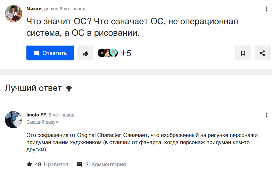 ОС → Original Character → Оригинальный персонажа или в моём случае это АВ (Альтернативная вселенная с моим уже персонажем)